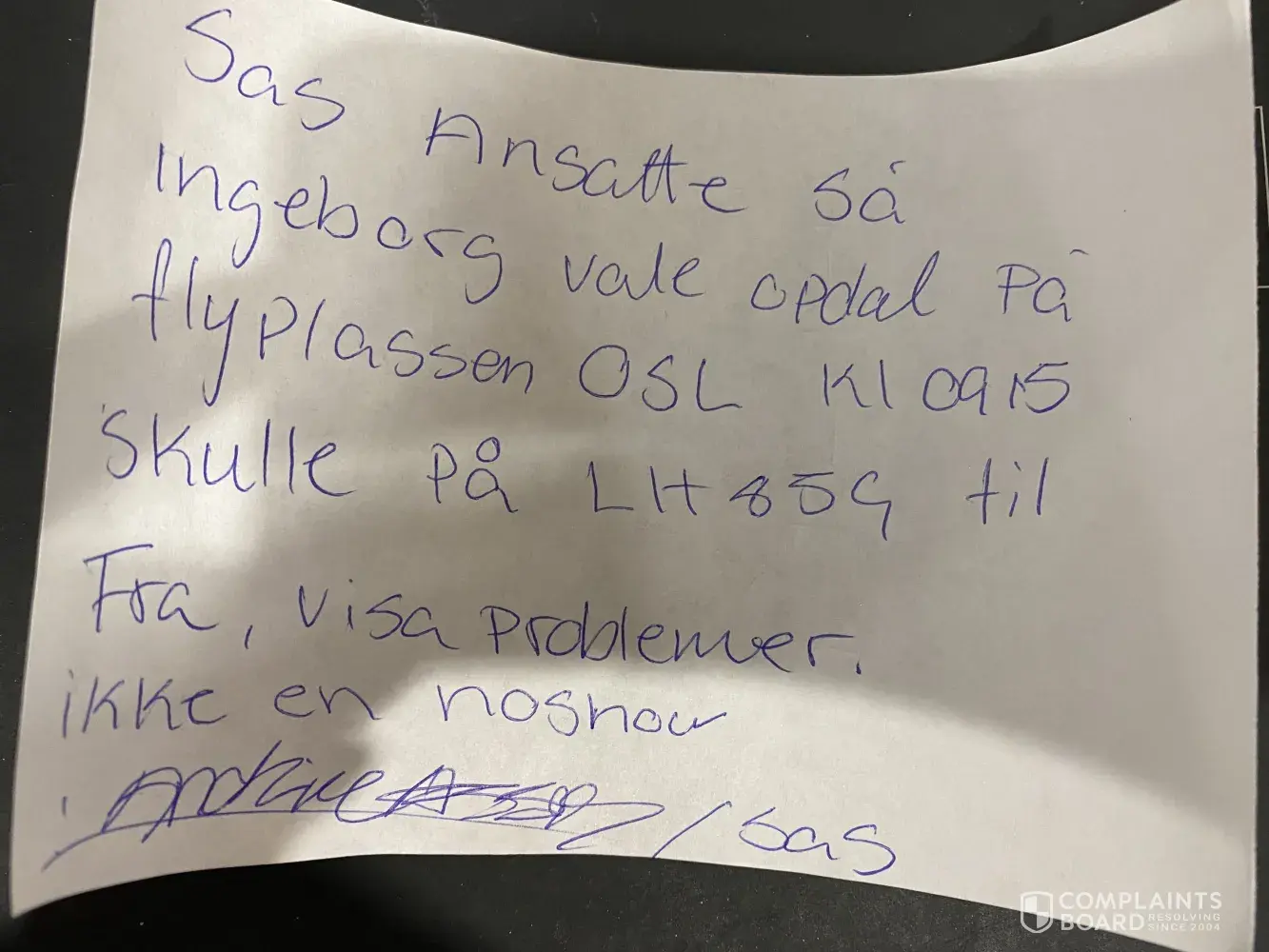 P.S. Attached is a picture of me at the airport where I intended to check-in to my flight, and I was therefore not a "no-show", but denied entry. Additionally it is a note (in Norwegian) from the SAS personell that handled my situation, confirming I was in time for my check in. I have also attached pictures of my confirmed payments for the two visas, and I can provide a bank statement as well if necessary.