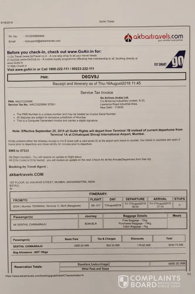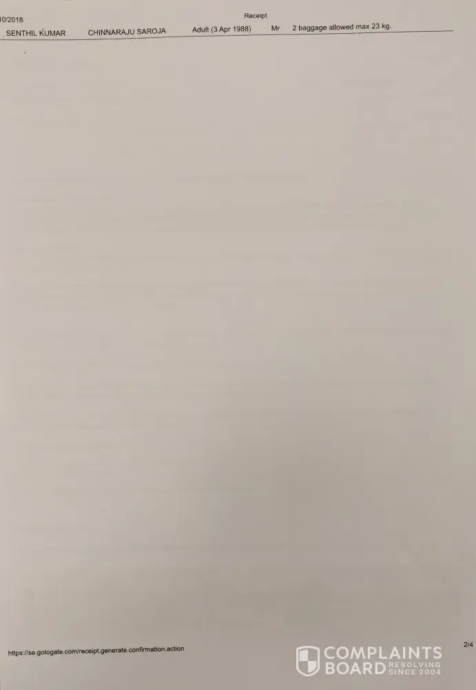 3. I was told by go to gate to purchase another case from blue air for my outbound journey thus incurring more cost even though i had been overcharged by go to gate and that go to gate would investigate how this error and overcharging came about