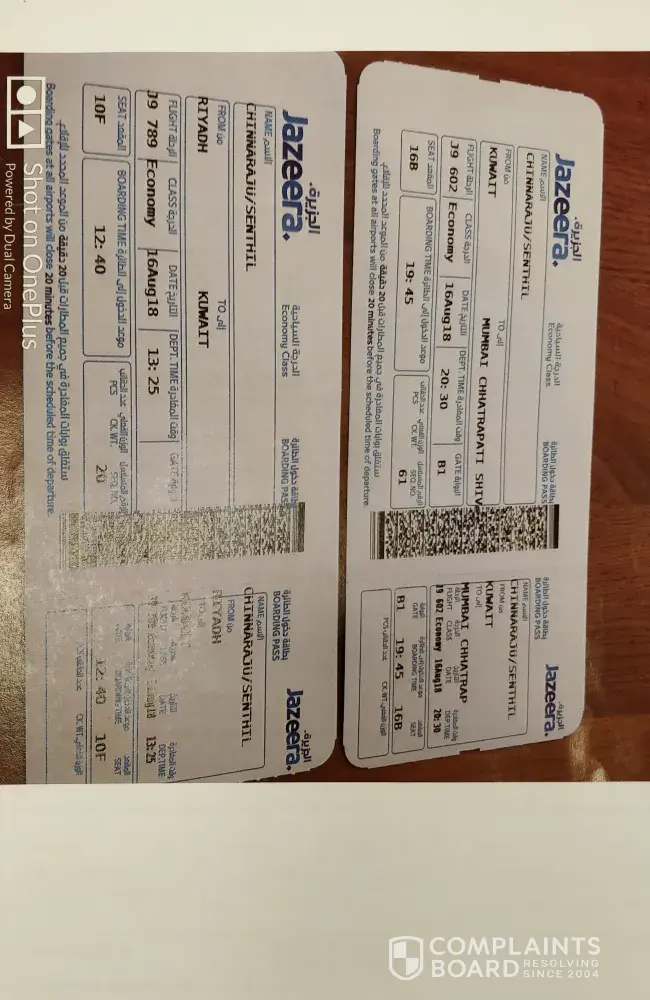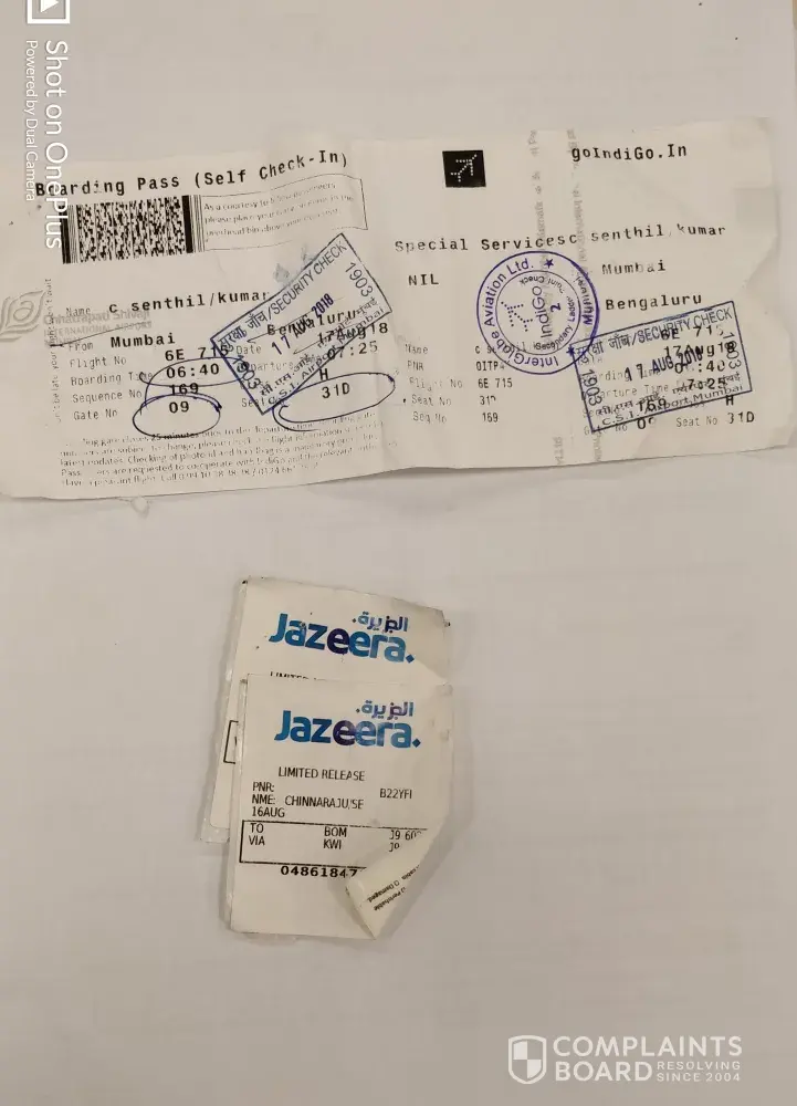 Flight details : 18/09/18 Air India 23.40 hrs DXB to Mumbai