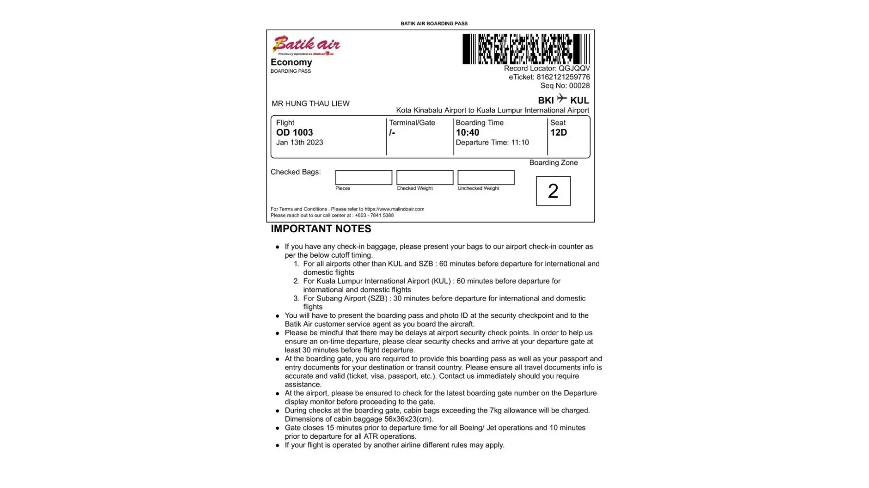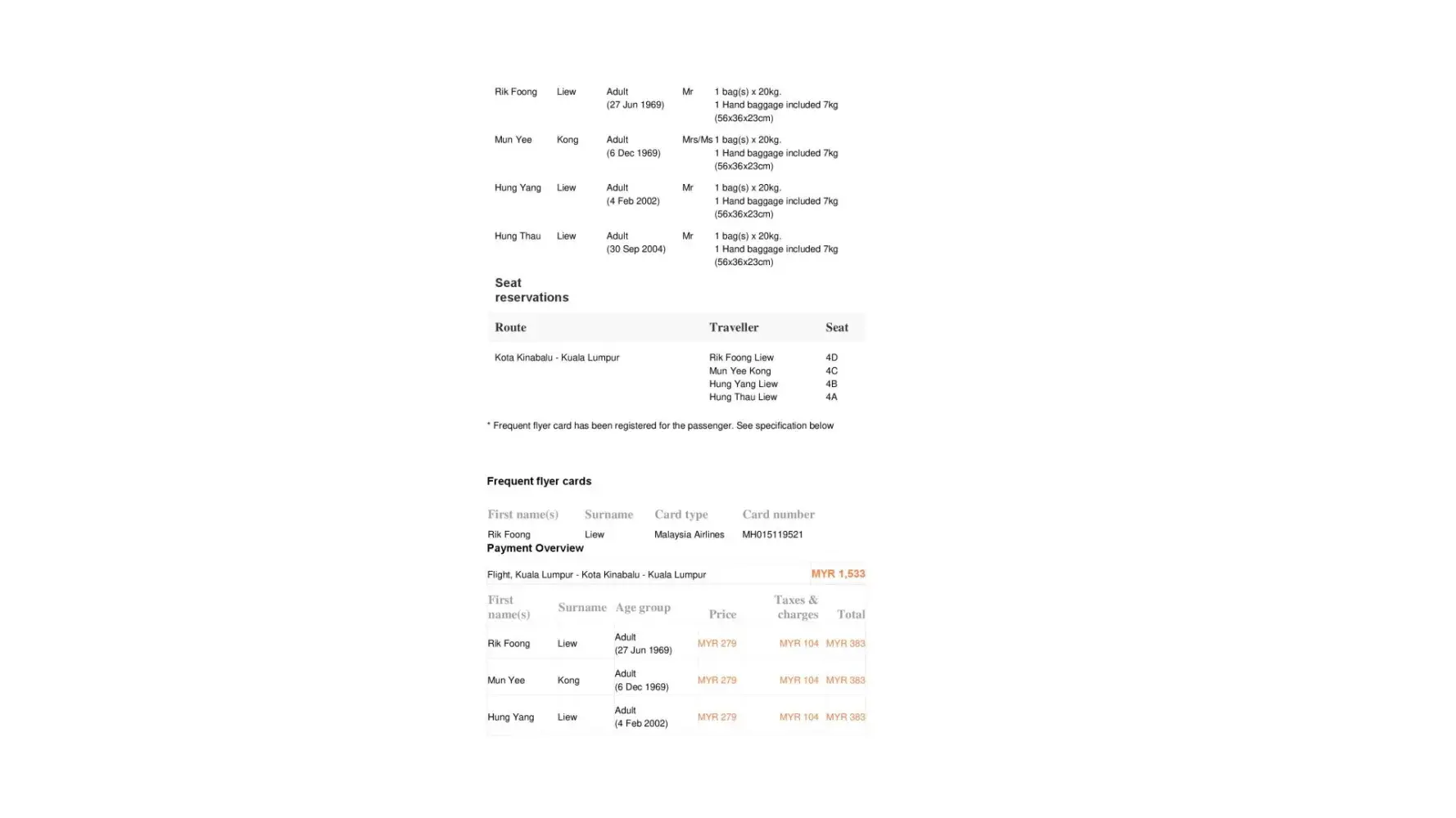 I quickly realise that instead of those 2 different flights, I had purchased two tickets for Lahore to Jakarta. These tickets had the exact same information given to them, and were for the exact same flight but with different seats. The order number for them were M06K16 and M06GBN. I think this should not even have been possible for me to book as double booking is against the rules of most airlines.