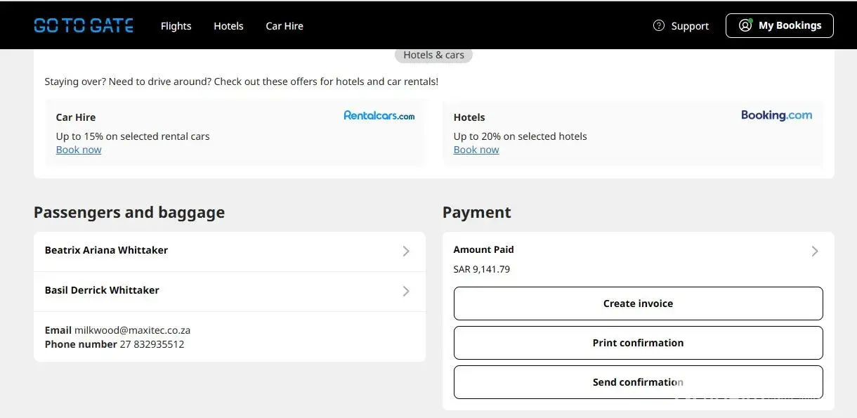 The tickets were cancelled within 5 minutes of receiving the payment of £6,595.46 I have contacted Go To Gate on a number of occasions they have said there is a technical issue with refunding the money. They have had my money now for nearly 2 months. They cannot explain what the technical issue is.