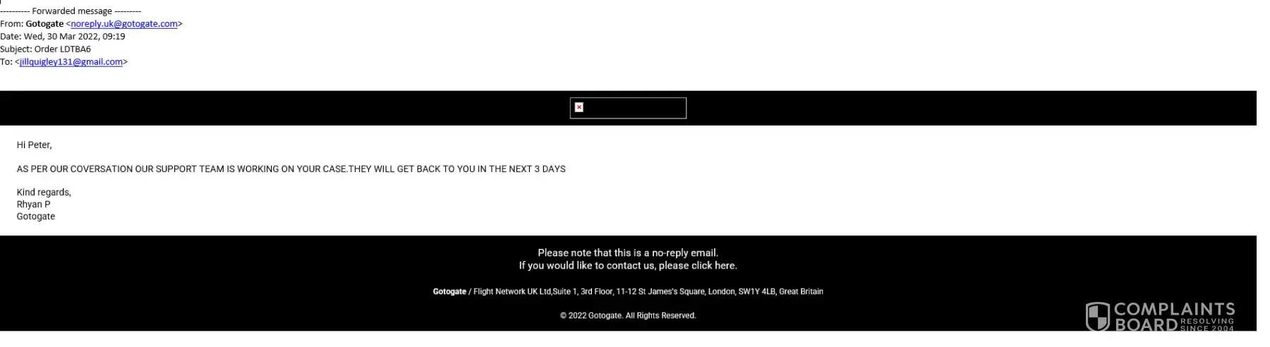They sent me an email stating that they will not issue a refund because the airline won’t, even tho it’s Gotogate’s inability to fulfil the customer request as asked and promised.