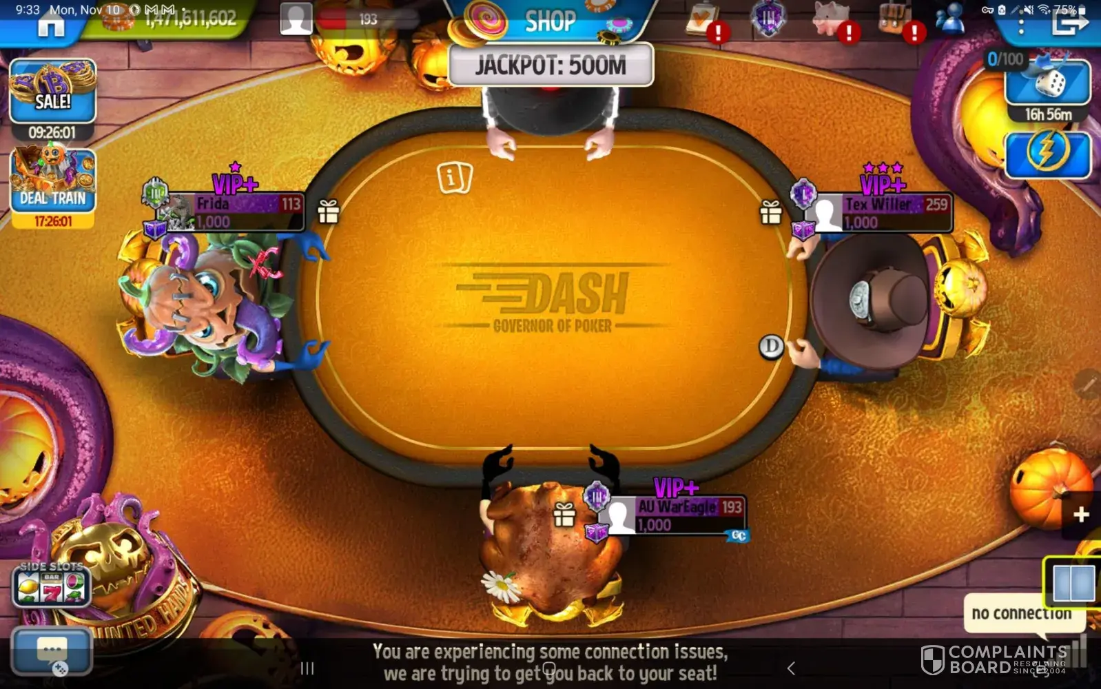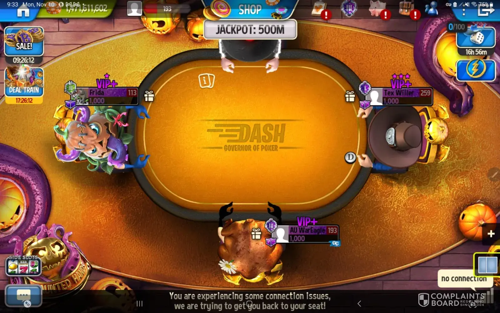 Like many other people according to the reviews. A lot of connection problems. Put some $ into infrastructure. Yea answer to everything is WE USE THE BEST RNG yea, yea, yea. Never admit guilt. 2/28 game is stuck on activity, all challenges met 5/16 was awarded two SUPER SPINS but never received them thank you very much. 8/24 how do I report a player “lezwin†for asking players if they are a “JEW� 12/25. You can continue to give me CRAPPY hands but still will not pay to play. Merry CHRISTMAS. 1/7/22. Just curious how much money $ do I have to pay ( with your BEST RNG B. S.) to get a hand that I can win with 1/21/22 if u don’t pay to play and get up there ranking that is when you use your old “ experiencing connection problem†and you start losing. Cute. Best RNG B.S. RNG = ROTTEN & NO GOOD