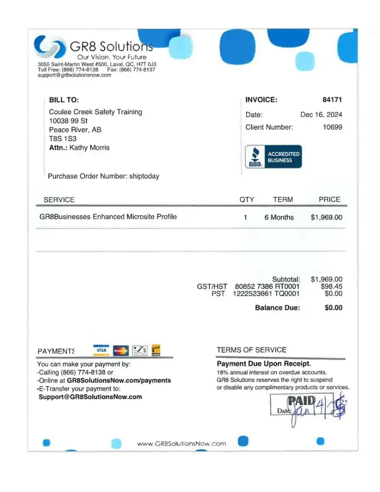 This company has been sending invoices demanding payment for their Enhanced Microsite Profile that apparently was set up for our business. Being that we do not recall this being set up we complied as they were linked to BBB in Canada on their invoices.