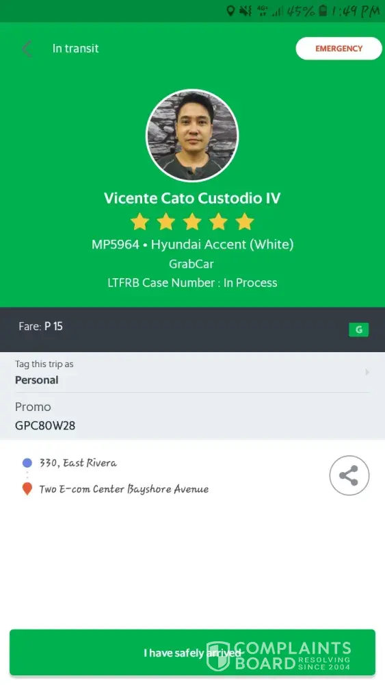 grabcar driver complaint