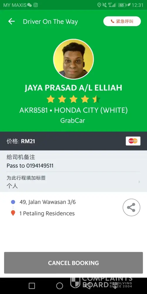 My GF willing to wait for this taxi & choose not to cancel it from the beginning, but she never expect to have such a rude driver at the end, when she did no wrong.