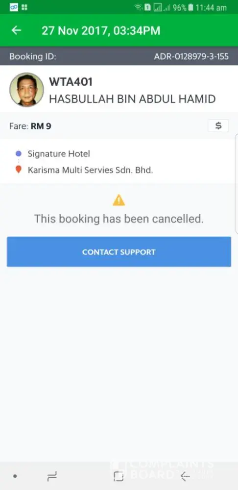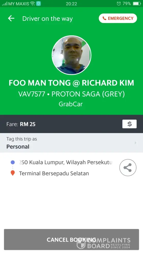 I have called a grab from Oasis Suite KL to TBS to take bus to Singapore, I made the grab booking at 1945hrs on 19 Nov 2017, I have message him but he didn't reply.
