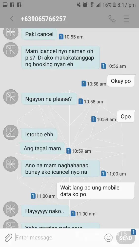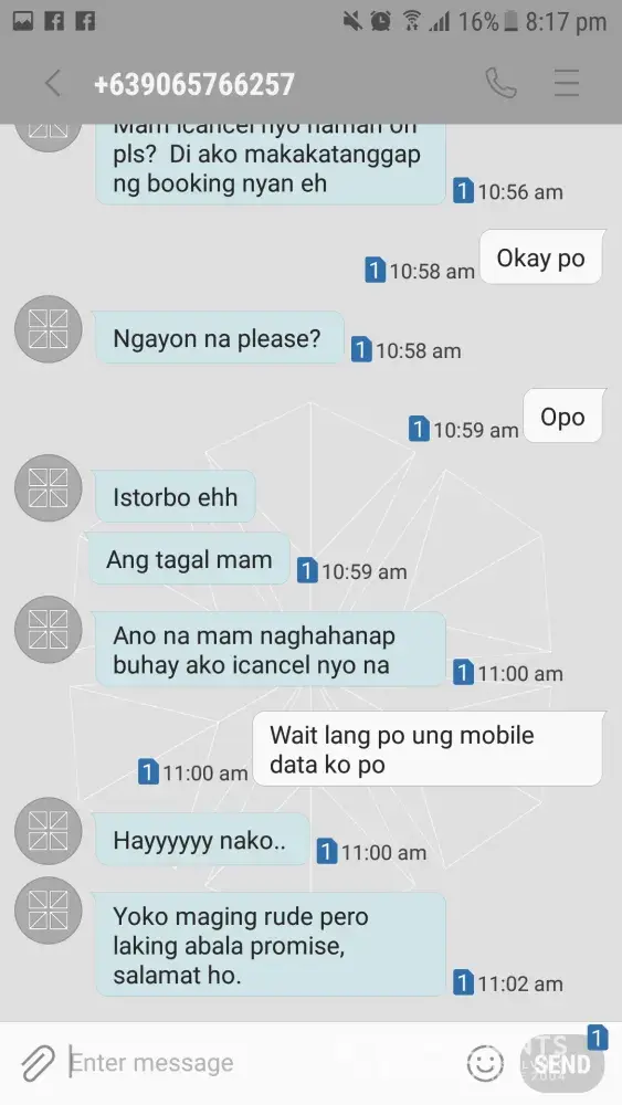 At around 7:15am I booked a 6seater grab car and the apps find me a driver, but no details indicated, no plate and driver's name either.. I am going to cancel the booking kasi I dont know any details of the car, but failed or system error to do so, dahilan kaya nagcommute na lang ako kasi malilate na ko. Suddenly, a number appear and calling me, I cant answer the call kasi im commuting.., after na hindi ko masagot, nagtext sya saying ("hello mam kung ayaw mong sumakay icancel mo nalang wag mo kmeng gagohin. Nakailang tawag n ako sau wala k man lng sagut") tinext ko namn sya na ikinancel ko na, hndi pa lang nagok sa grab apps kasi, error nga.. Hiw arrogant it is, he call me gago.. Is that a good driver of grab will be... Dapat hndi ganun mga driver nyo... Sa tagal at dami ko ng booking, sya lang at first time na naexperience. Ko... Hopinh to take some action to this kind of grab or uber driver man sya... Tsk.. Tsk.. So annoying early in the morning... Please hrar my complaint..