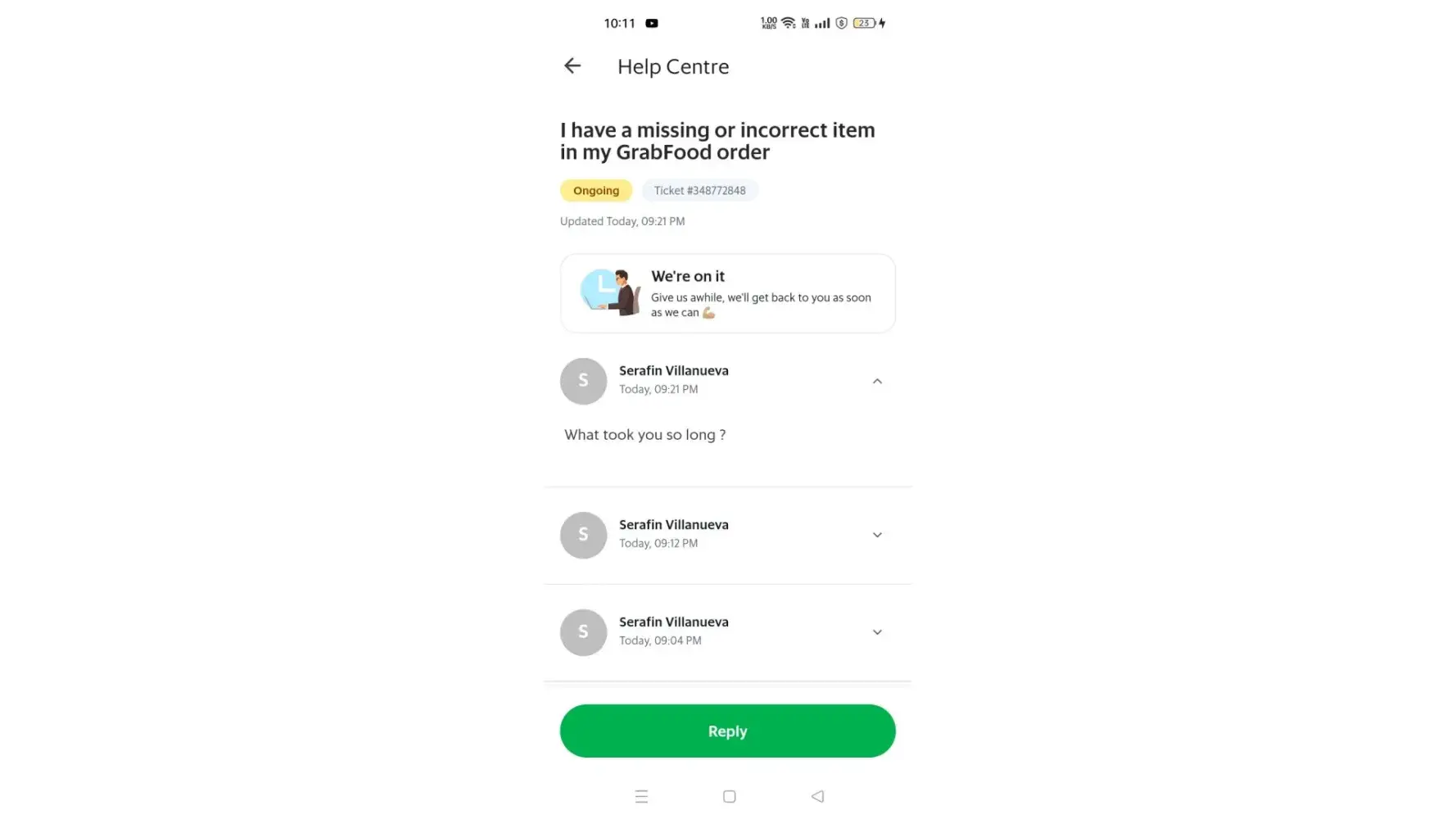 Grab food and grab customer support