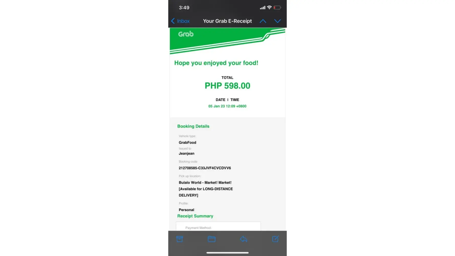 I ordered some food in Bulalo Express today and decided to choose the self-pick-up option. I was using grab pay as mode of payment. The store was preparing the food I ordered when I unfortunately swiped the "order collected" tab. Though it says it was cancelled, I got charged and it was deducted in my grab pay wallet.