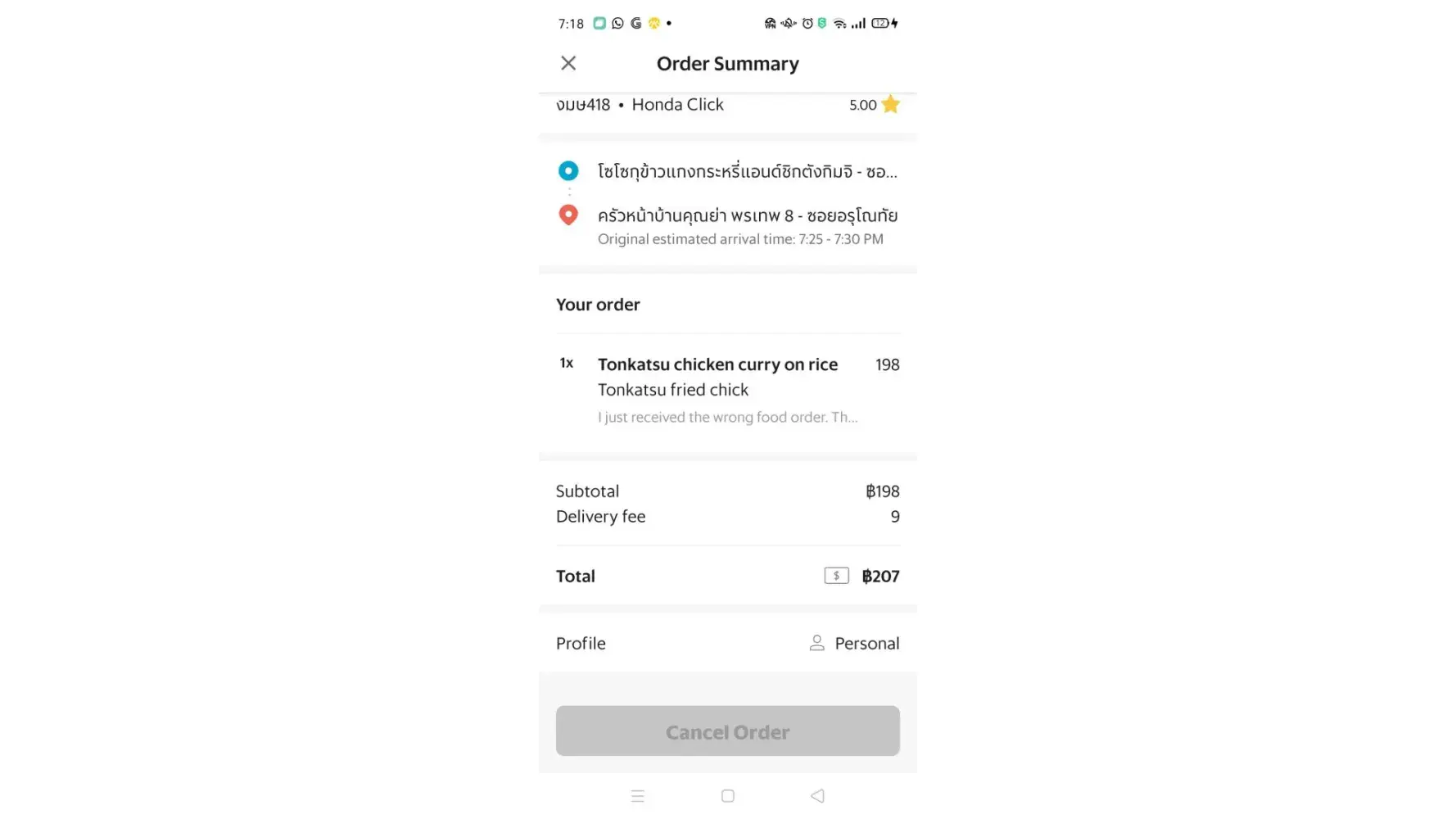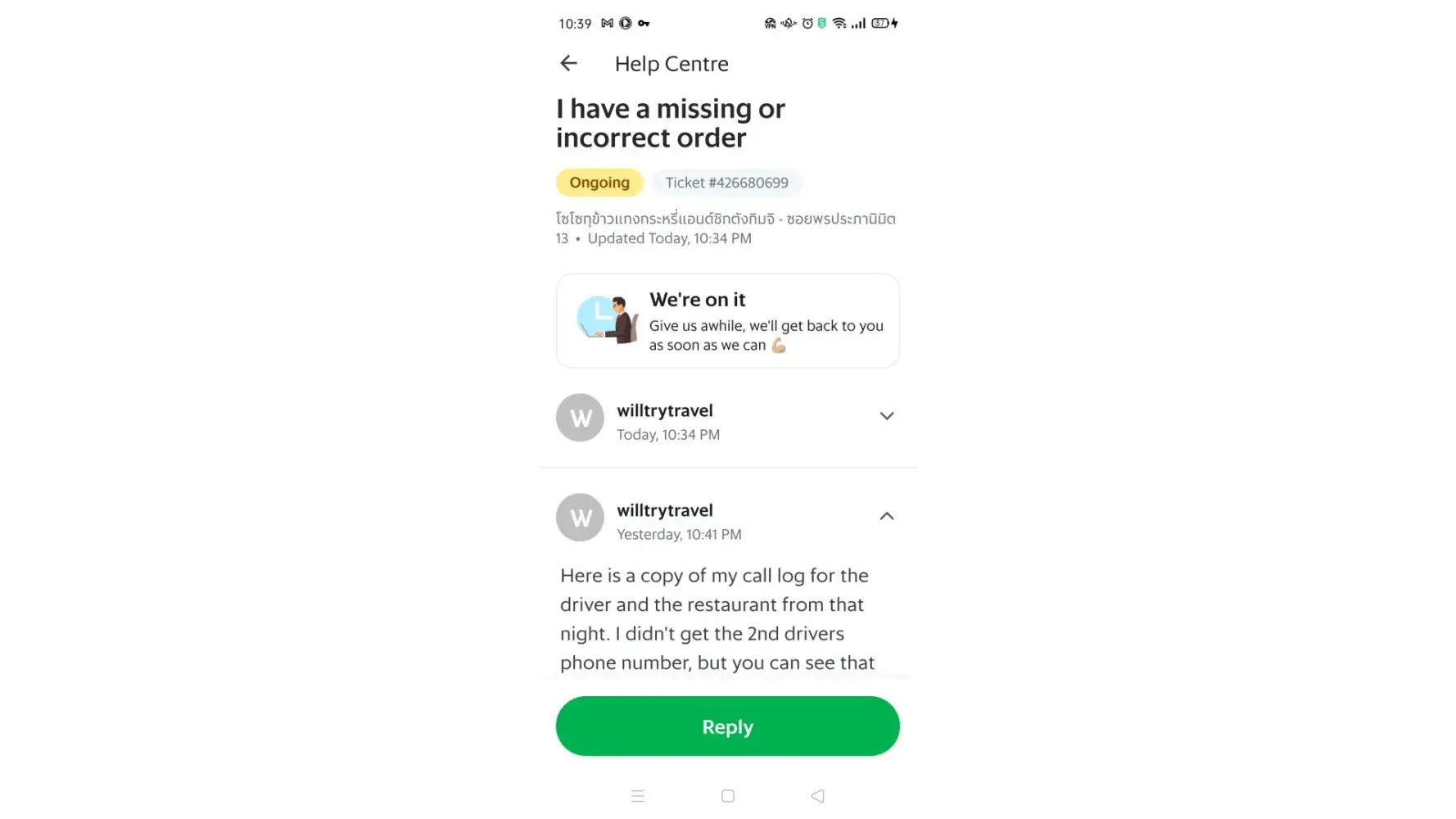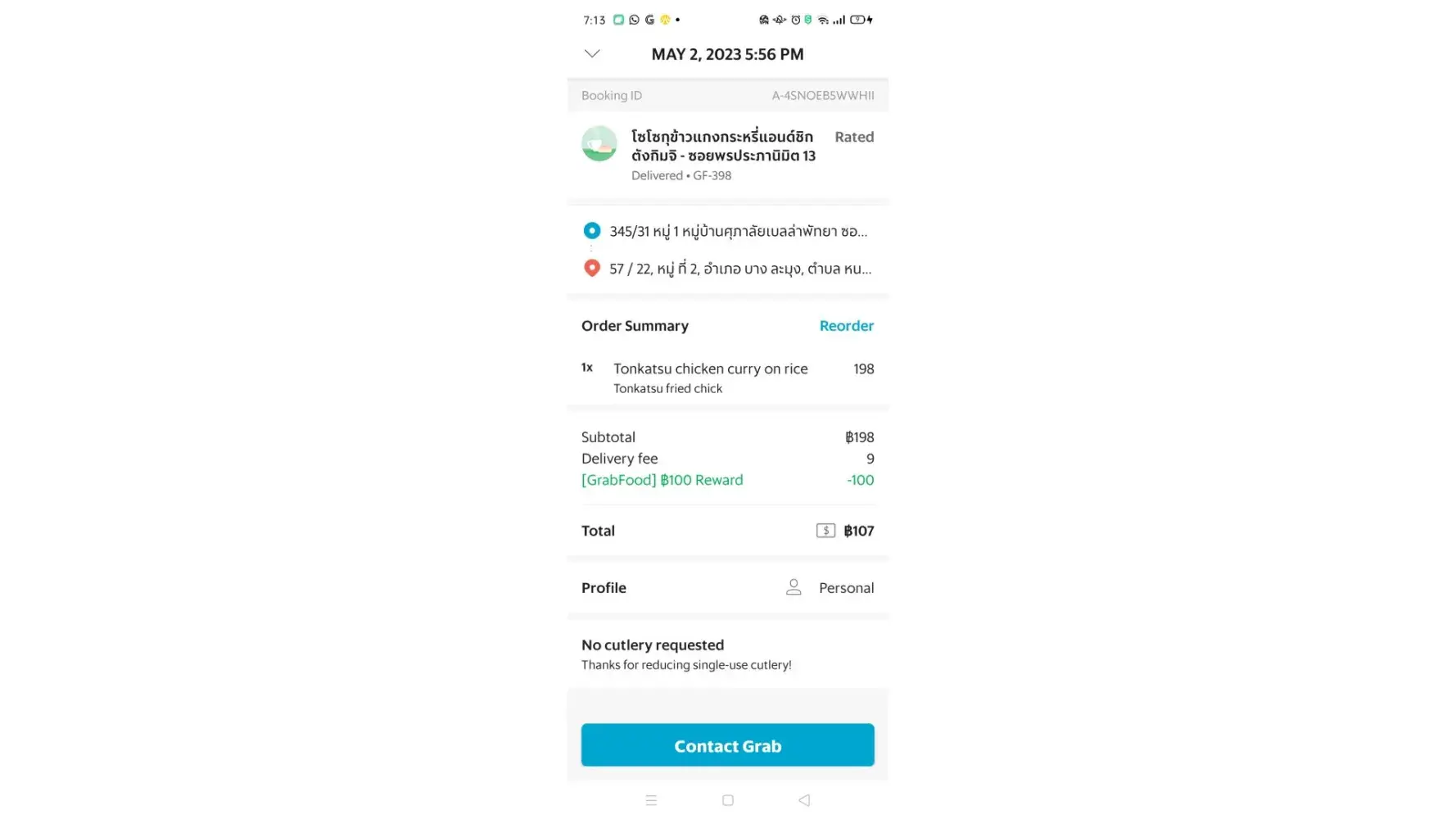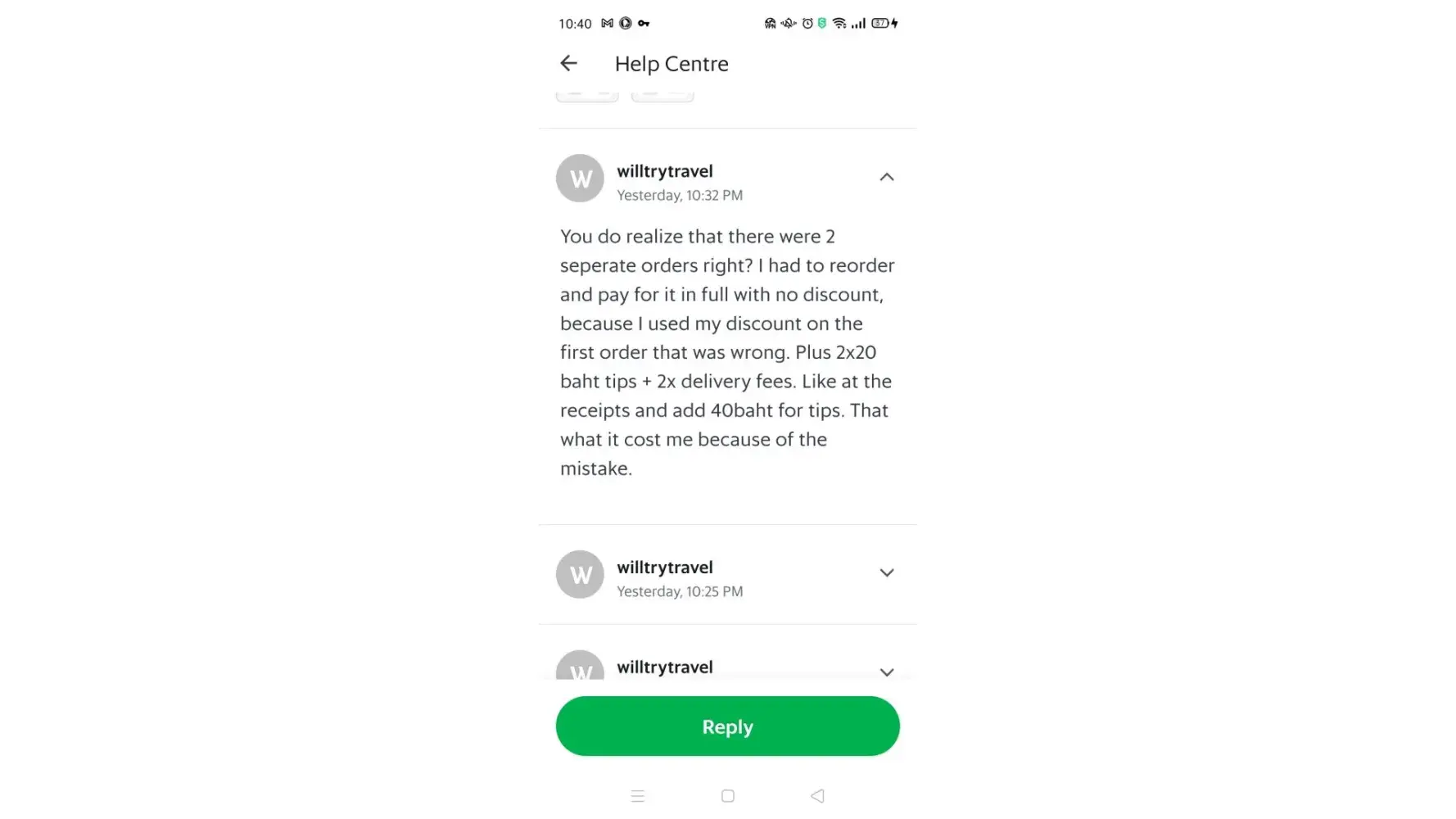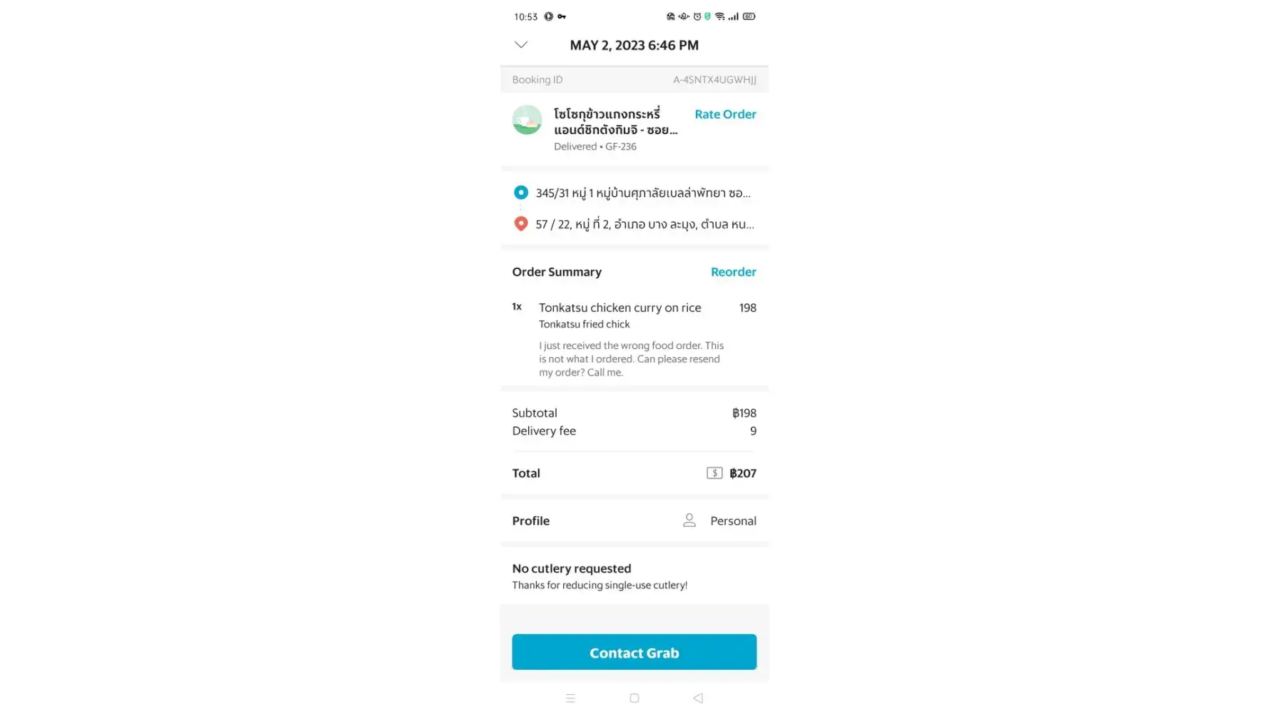 My point is that incrementally, Grab steals from it's customers on refunds/rewards... not to mention all of the headaches involved in trying to get the refunded money. So, I'm cancelling my Grab account right after this is posted. In Bangkok Grab was reliable but we also had Food Panda, which I liked much better than Grab. But in Chonburi, there is no Food Panda. And Grab is horrible. Grab customer service isn't much of a service at all, to it's customers. They always try to short the customers on the refunds. Paying back less than was spent in the product that was ordered. That's why I never use my bank account or credit card with Grab... Cash Only! I've included pictures or wrong food and damaged foods and messages from Grab support.