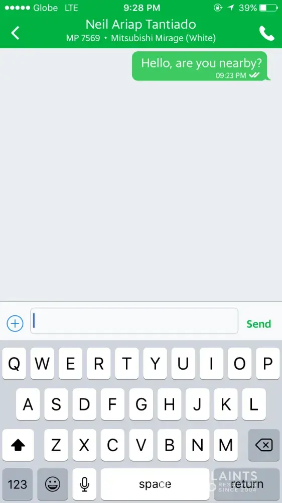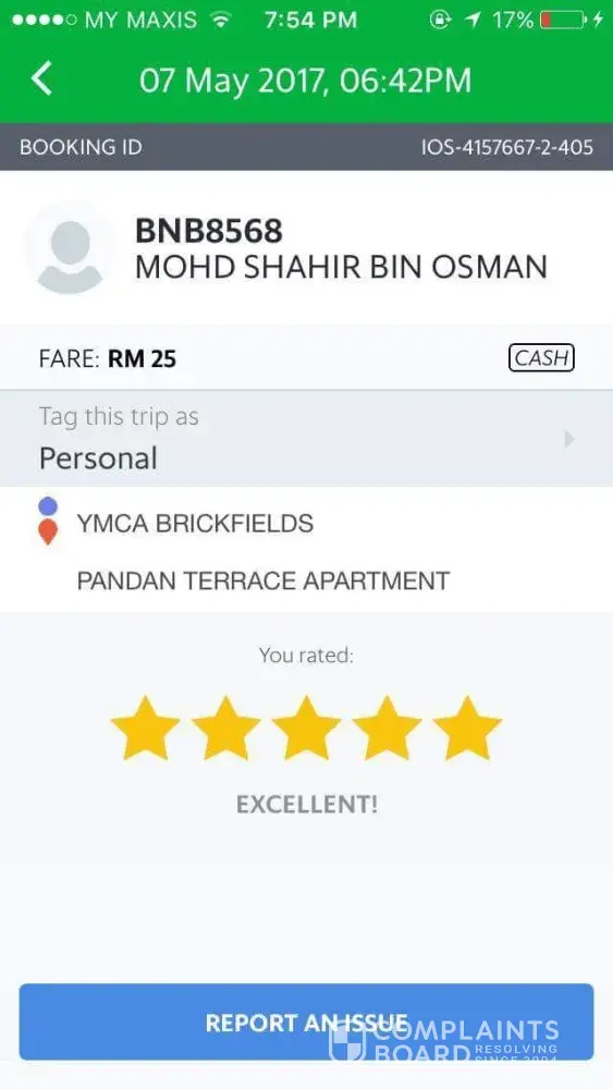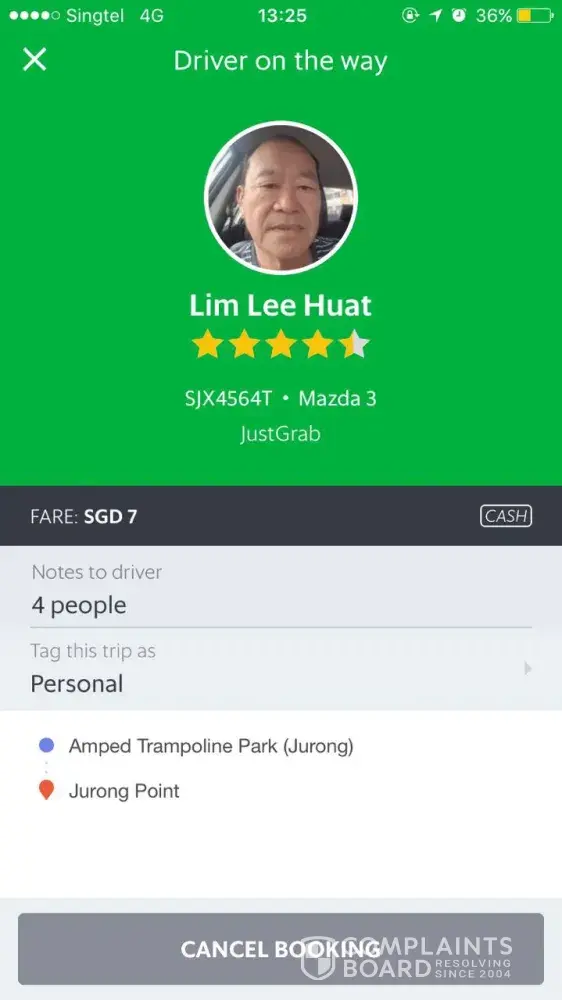 Grab I am complaining on a taxi vehicle number shd9216u