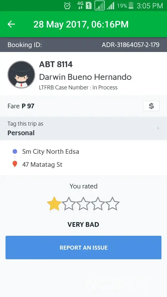This incident caused me so much inconvenience as I am a national government employee and about to represent the agency in a national inter-agency policy workshop. This incident made me so late for the said activity. Imagine the travel I have been through, I went around the whole Pasig City to Edsa to Quezon Avenue? This is the worst experience I had with Grab.