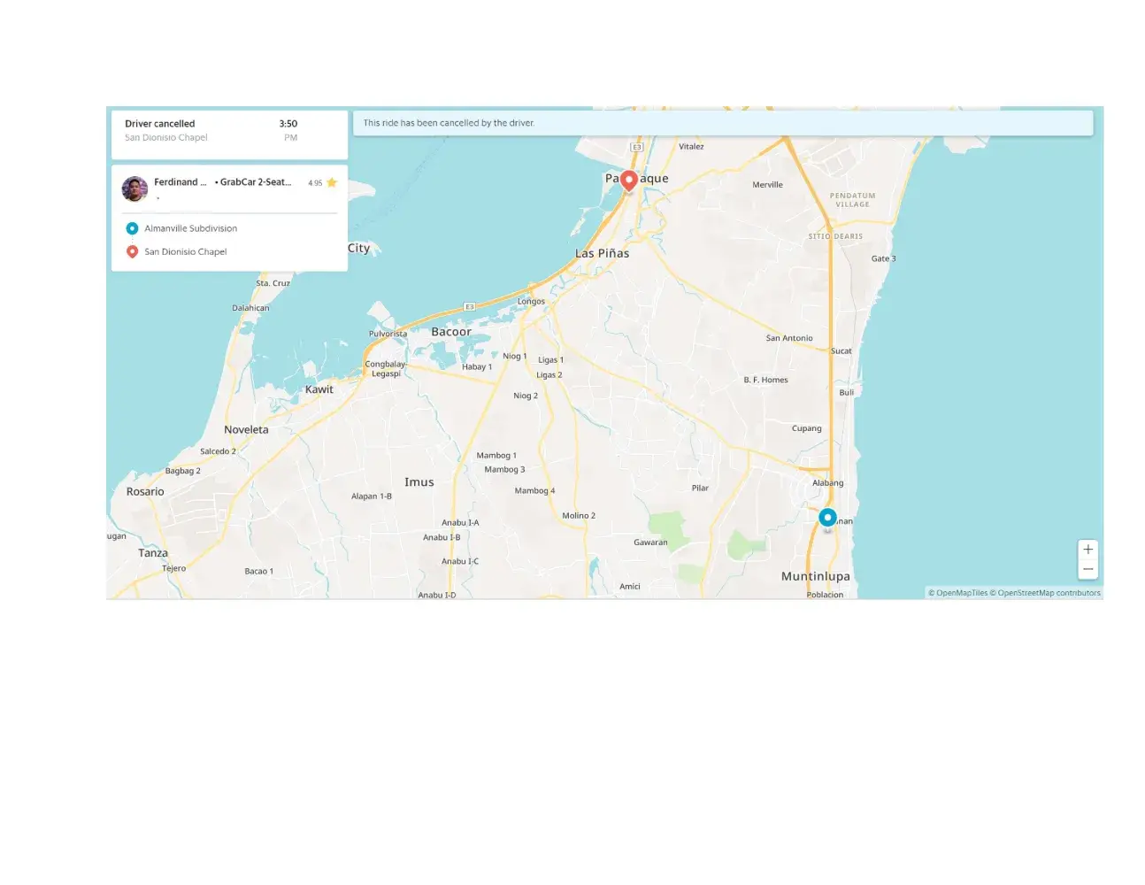 Ferdinand, the driver who accepted my booking cancelled my booking and charge me 50 pesos for 5 minute waiting even if he did not reach my pick up location and had just arrived in the wrong location not more than 5 minutes. Maybe he just need 50 pesos to earn more and just cancel bookings all the time.