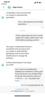 I have scheduled an order for a 6-6.15pm delivery time at 3.13pm and confirming it before I press order payment. Upon confirmation the delivery is changed to Now (3.45pm-4pm) and I straight away contacted Support at 3.15pm. Instead of helping, Support keep repeating that I have not scheduled an order. And they could not do anything, the driver allocated till the driver delivering. The ordeal ended at 3.45pm with no help at all from Grab end.