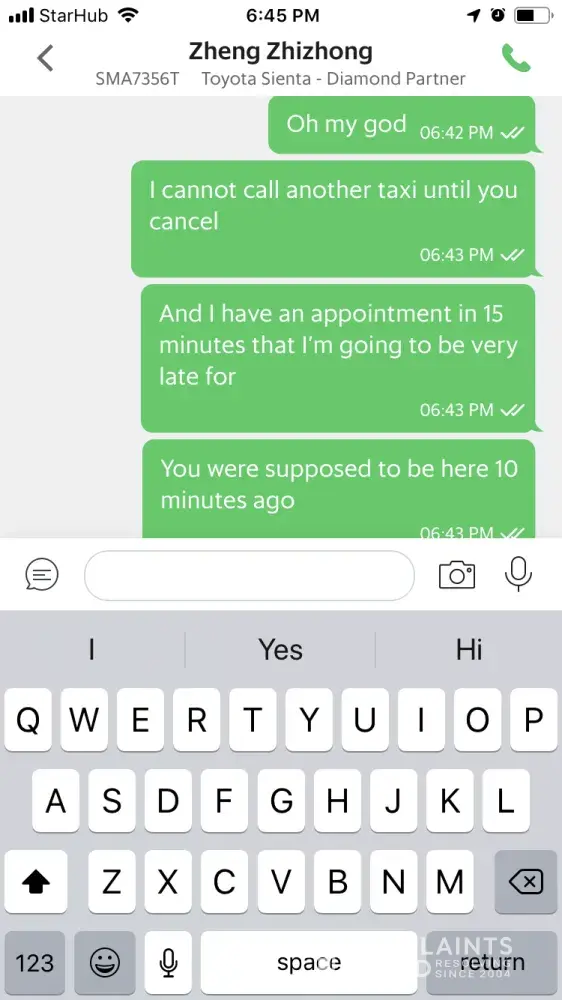 This happened on 9 March 2019. I made my booking at 2.40pm, found a driver at 2.41pm, all the while standing at Stephen Riley Centre in NUS. My destination was at SIT Dover. I received the notification that the driver has arrived at 2.46pm (me thinking he was waiting at Stephen Riley Centre drop-off point). The driver was Choo Kim Leong, Simon. License plate SJB780U. Booking ID: IOS-[protected]-9-001