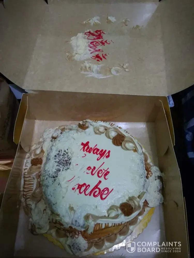 I usually order food in Grab but this was the first time I had a very bad complain about it. The driver recklessly deliver the cake to me. It purely damage as u see in the picture.