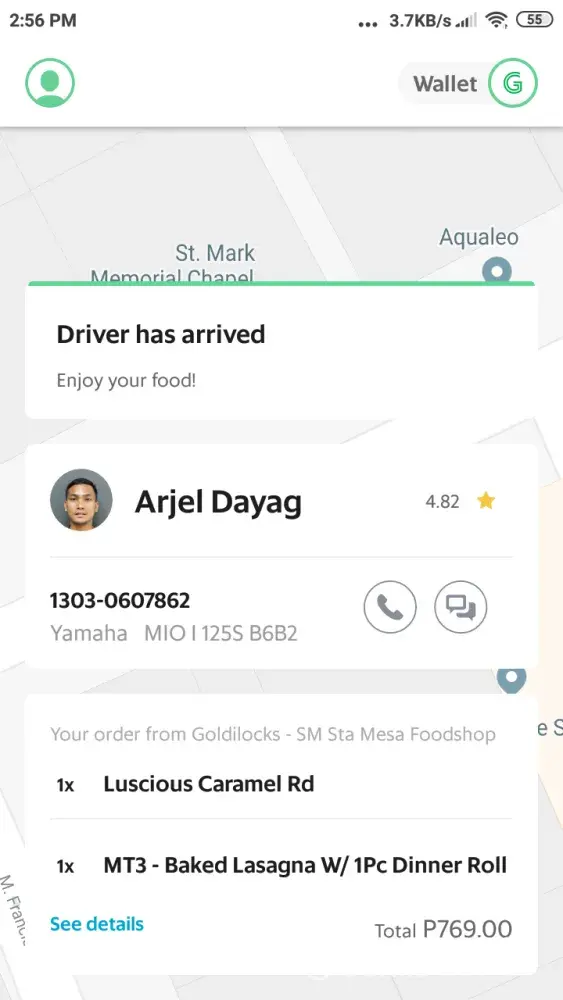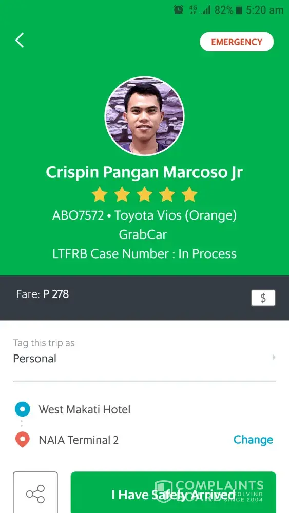 Grabcar driver name / Plate No.