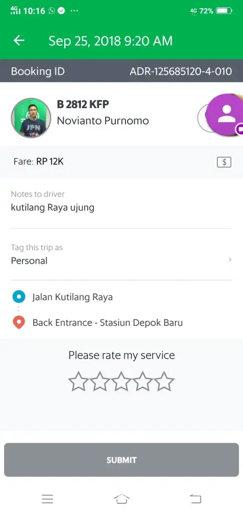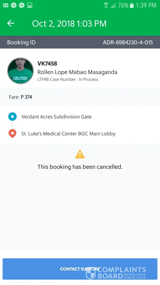 Ung bill ko po is 112 pesos nagbigay ako ng 1000 pesos kadahilanan po n wlang barya si driver sinarado nya n 110 pesos nalang yung babayaran ko..sa binigay ko 1000 ang change ko ay 890 pa po kaso binigay nya lang is 490 diko n sya nahabol nung napnsin ko ang sinukli nya s akin please sana maaksyunan po ito at maibigay ang kulang na 400 pesos..Driver name JAYSON ERESPE GAYATIN