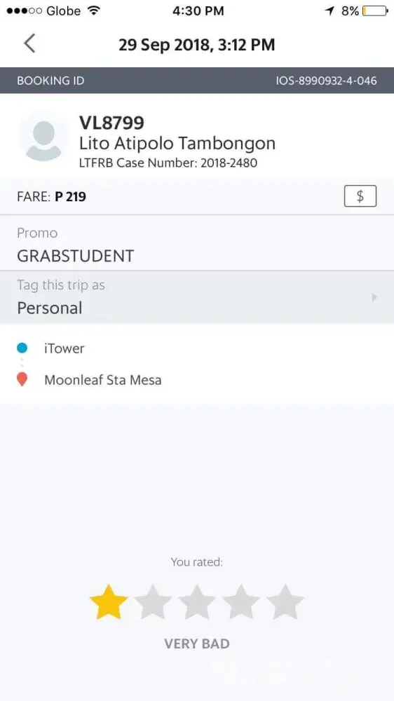 Last Aug26, nagbook ako ng grab from Kidzania Manila to MRT Ayala station. On our way, si kuyang driver binababa na kami somewhere, ilang mins pa lang kami nakasakay that time, kasama ko anak ko. Hindi ko kabisado ang lugar pero alam kong hindi pa dapat kami bumababa doon, sabi ko kuya nasan po mrt dito? Sabi nya magtanong na lang kayo dyan, at talagang pinapababa na kami. Wala kami nagawa kundi bumaba. Binigay ko padin payment na dapat sana hanggang mrt ayala. Pagkababa nakita ko bgc padin pala yon, nakaalis na yung driver nagmessage ako saknya para sabihing mali pinagbabaan nya at irereport ko sya. Nagbigay nadin ako ng rating sa driver pero gusto ko magfile ng formal complaint. Sobrang hindi magandang experience. 2nd time ko pa lang yun na maggrab and di ko na inulit because of that experience.