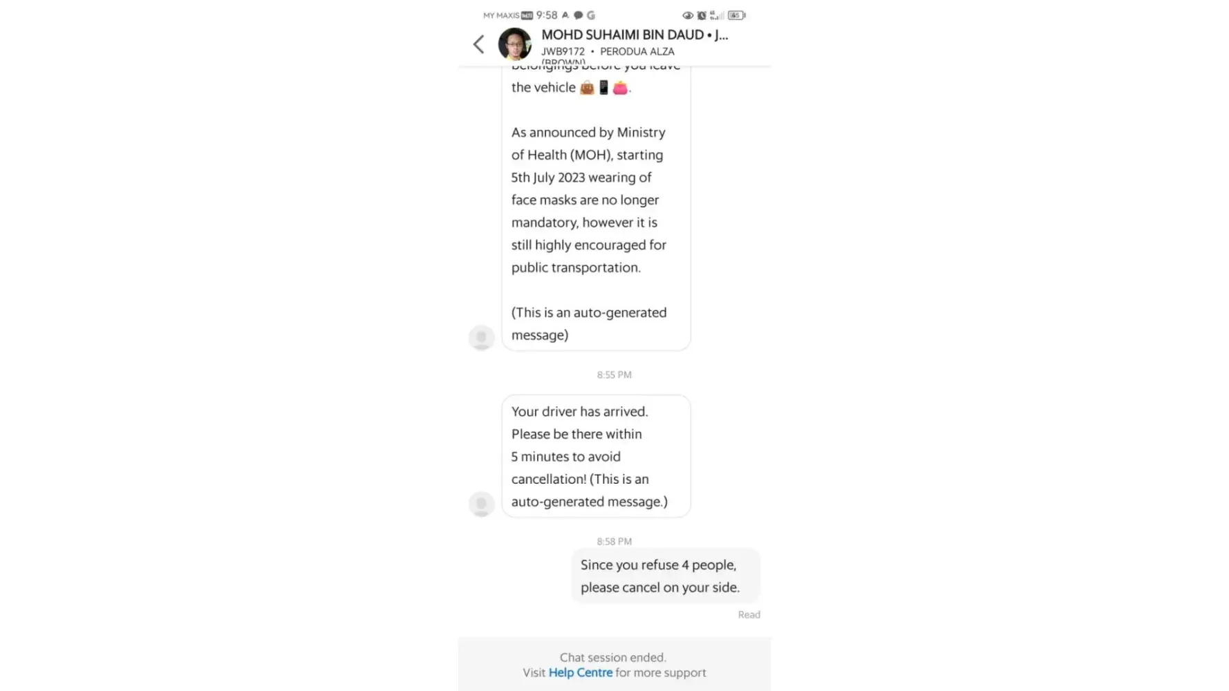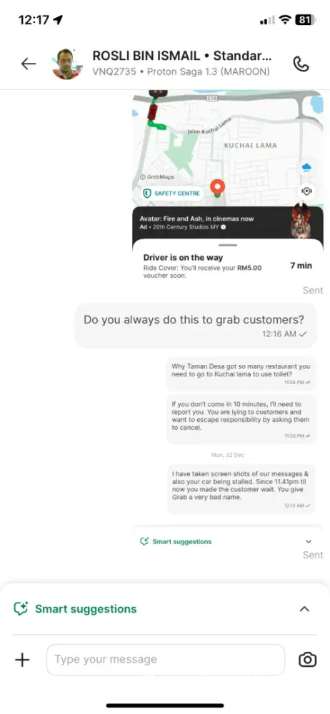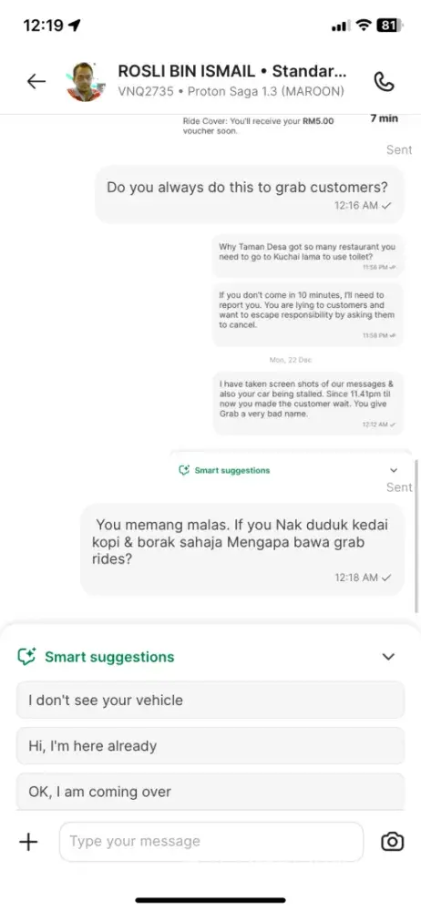Requesting a positive response from Grabcar Malaysis asap