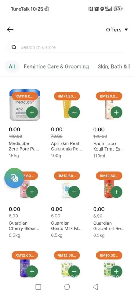 Possible pricing glitch on grab app – rm0.00 items listed under guardian
