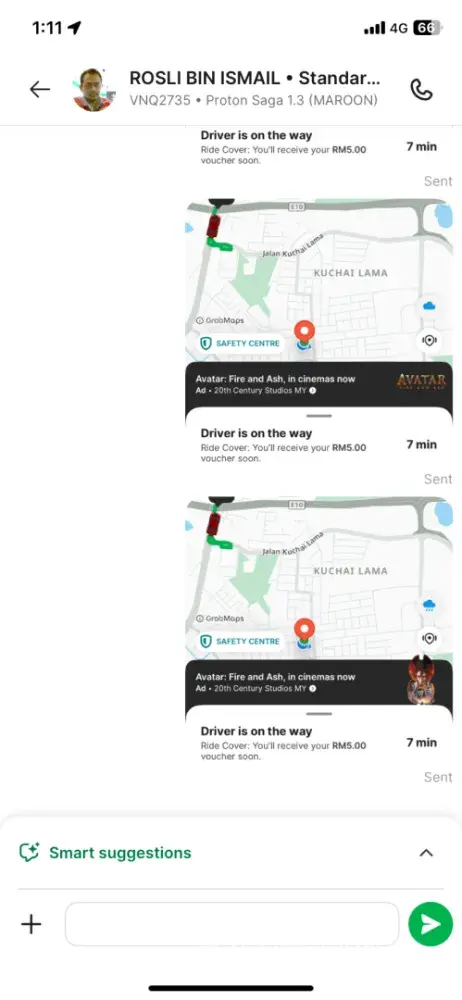 Hi Grab, saya baru sahaja menggunakan grab car service di sandakan. Driver sangat kurang ajar. First of all, the driver turn off the aircond without saying anything to us. Not friendly at all as we arrived, saya ambik barang kat bonet belakang and adik and emas saya masih kat dalam baru nak keluar daripada kenderaan, ada 4 plastik bags saya kena ambik and the last plastik saya sempat angkat tanpa saya sendiri tutup bonet dan kenderaan dah jalan. With not saying thankful or anything to us. Fyi, kereta pun sangat busuk. i’ll rather took Maxim service rather than Grab car service. His plate number is SU1135F. Hopefully grab ambik tindakan. Thank you.