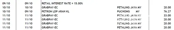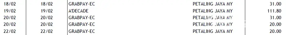 There are also 2 double deductions for Grabpay in my Maybank MasterCard transactions as follows: