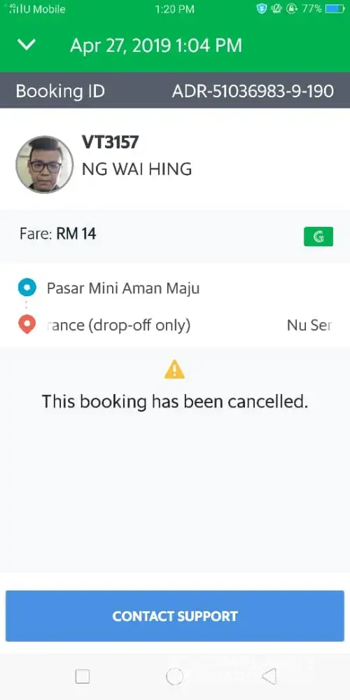 Saya nak buat aduan tentang drive grab.. Kes pertama drive grab cancel oder saya alasan dia tunggu lebih 5 minit sedangkan dia tidak datang pun ke location yang saya berikan.. Dia sampai ke location lain bila saya tengok melalui maps grab. Tetapi dia cancel. Lagi 1 kes saya oder n tunggu hampir setengah jam grab tak sampai sampai. Grab tersebut lansung tak berganjak.. Saya tengok melalui maps grab tersebut tetap berada tempat yang sama. Saya cuba mesej n call drive tersebut tapi tak di jawab.kalau tak nak ambil saya kenapa terima bila saya booking.