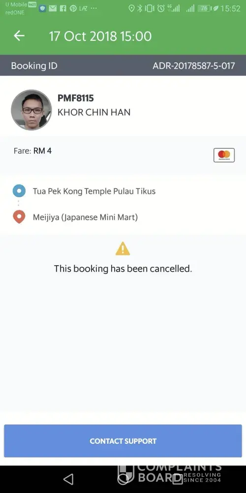 Today, 17/10/2018, I had ordered a grabcar service using the GrabPay Cashless method from Kota Tinggi to Aeon Tebrau but this driver insists me to pay more although I had paid through my debit card via . He told me that I only paid half but then again I had paid using the cashless method by that means my account had been deducted. Please review my issue immediately.