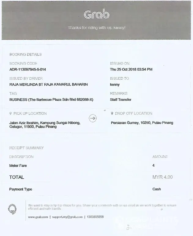 Today, we call a grab trip from Queensway Mall to Gurney Plaza. The bill charges RM4.00 but the driver demand payment of RM14.00 from us stated that, it is impossible the price so cheap from this destination.