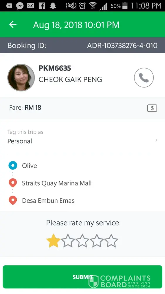 complaint against grab car plate number wrf7769 - driver mohamad shazamuddin