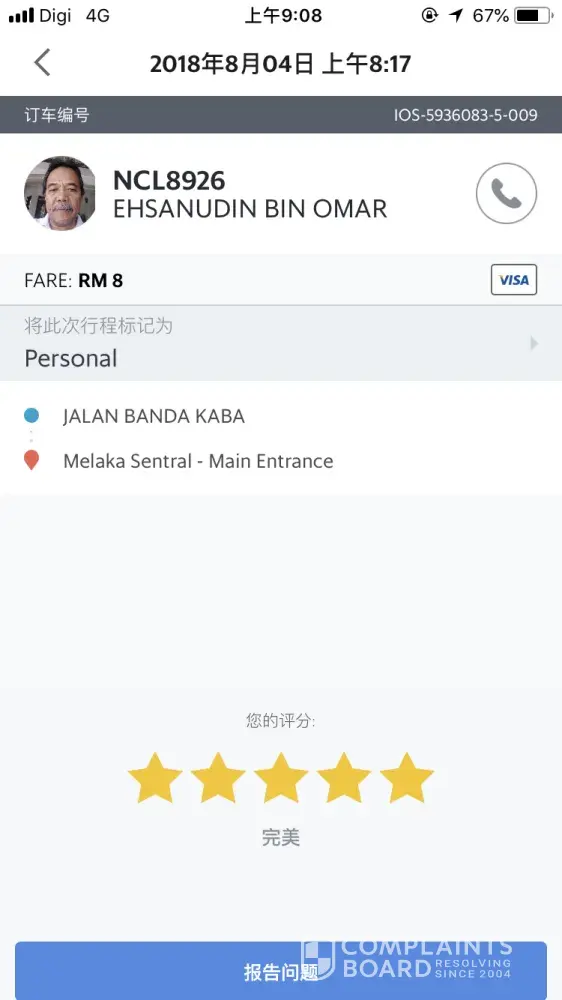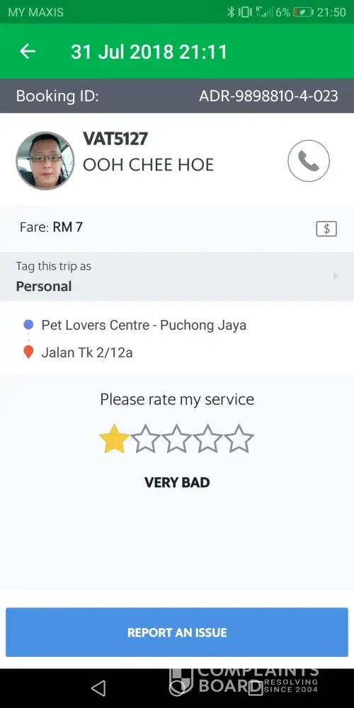 Grabcar Malaysia I want to complain about driver (booking number: ios59360835009)