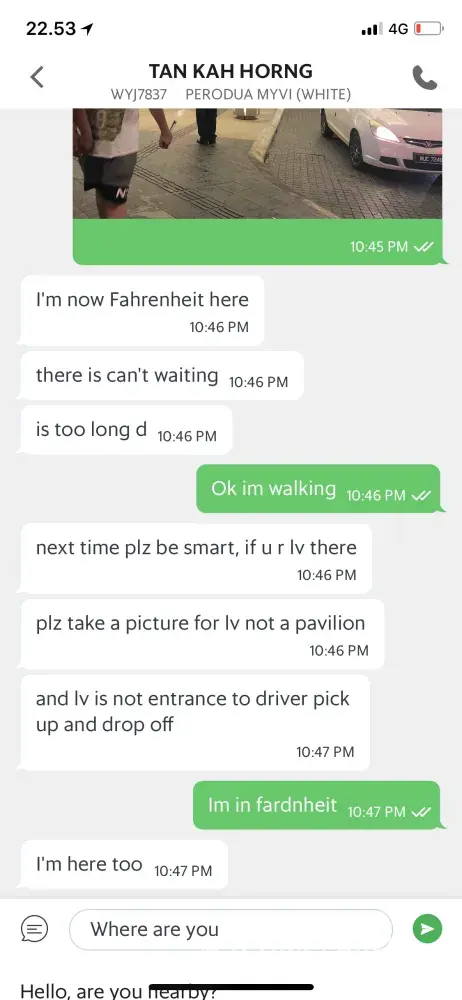 This grab driver being so rude to me. im so pissed, he texted me saying that he is at the location that i put. then i look at the grab apps. his car is not arriving yet. the apps itself showed me that ‘he is arriving' not arrived. so i told him im at the guard house. he blamed me saying that im the one who put the wrong location. i said no, im always go to work using this location. he must be at the wrong place. i will show you the screenshot. then i walk outside of my house area and saw his car waiting at the side of the road. i entered his car and show it to him, here look at this. i thought you are stuck in traffic. then he said why i didnt look for him. why i didnt texted him and all. i said this is the first time, grab driver wait for me outside of the road. this is a rapid stop, not a car stop. i pay for his service, it is not free. he should admit his fault, not blaming me. i have proof.