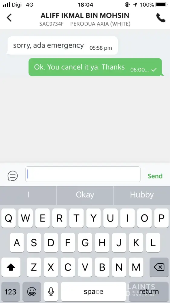 Grabcar Malaysia driver did not show up