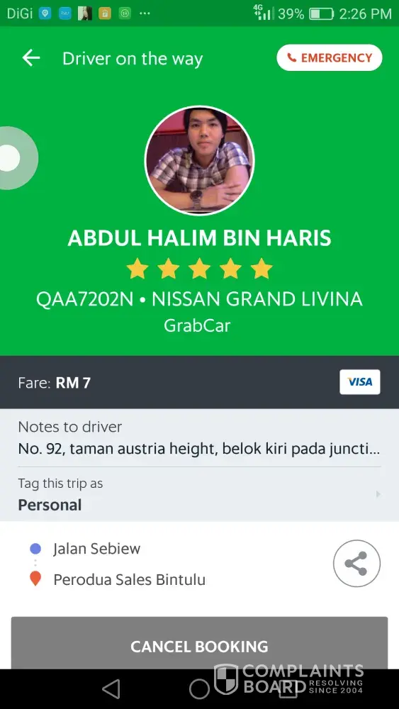 I booked a grabcar from my house 92, austria height, jalan sebiew, bintulu to Perodua Sales, 6 minutes drive away. I tried to key in my exact house address for pick up point but couldn't, the most accurate address is Jalan Sebiew. So I put my house number and exact adress at the note, for the driver in ky booking. After 10 minutes, a driver picked up my booking. Abdul Halim Bin Haris, car plate number QAA 7202N Nissan Grand Livina. After a while, he gave me a call, telling me to cancel the booking as he was at Medan Area, claiming that its rugi for him if he comes to my place. I replied, if he thinks ita too far for him, he should cancel the booking, not me. I explained to him that the pick up point cannot exactly pin point my house adress, and he thought.that I put the inaccurate pick up point, and refused to come pick me. I tried to reason with him politely, but he hung up the phone after saying, "if u dont want to cancel, then I wont cancel too. See how much time u can waste". At that moment, I felt that he is really rude and irresponsible. I canceled the booking, and rebooked. Managed to get another driver soon and got to my destination.