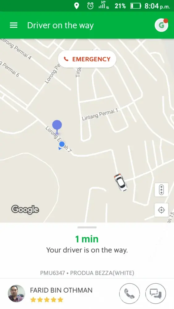 I was on the way to my office in bayu tinggi and stop in jln kebun nenas klang as the traffic light is on red. and this grab car driver out from shell petrol station, he didn't look at my direction and just drive out and hit to my car even though I already horn few times to warm him. to avoid caused the traffic jam at there, I make a move when the traffic light turn green and u-turn to meet him. I saw him came down from his car and check his own car. his car still good and he already saw me but he quickly got into his car and drive off. I was shocked how can he just go off like this and don't even bother to talk with me how to settle. anyhow I went to make a police report and please find the attachment is the police report. I hope your good company will consider to stop this driver because of his irresponsible attitude.
