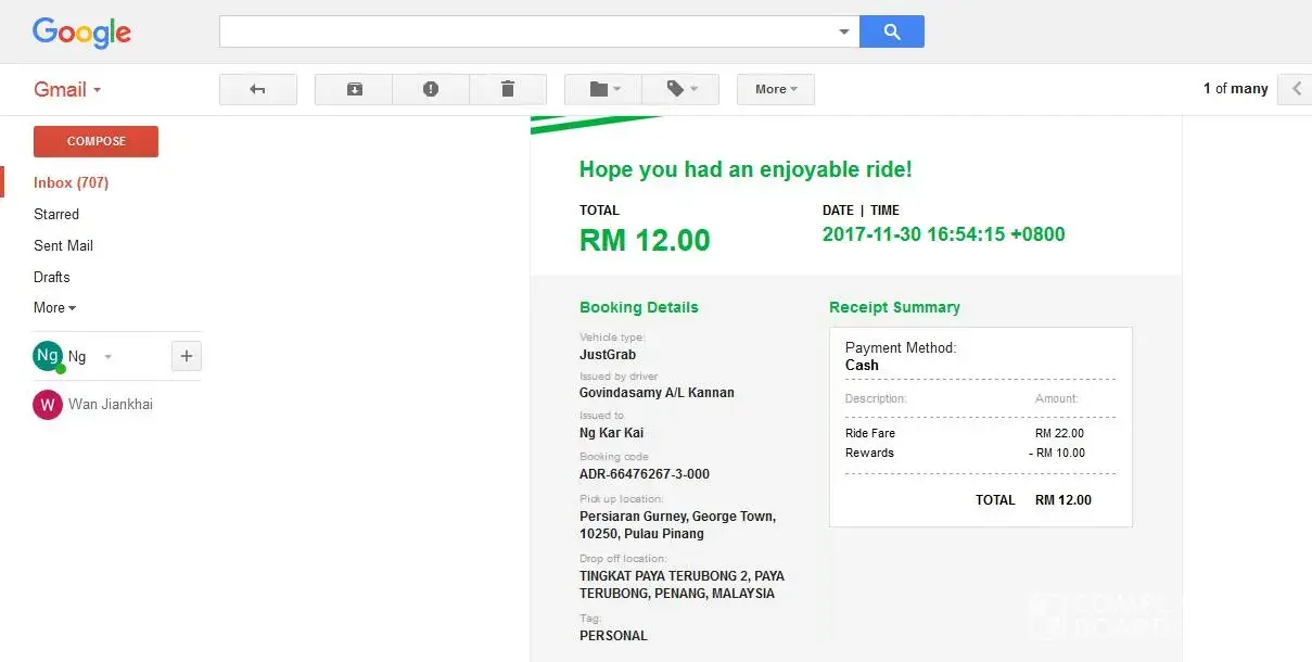 I have a different complaint. I am in Australia but some one is using my name in Penang & Grab has emailed me receipts on 2 occasions with my name!