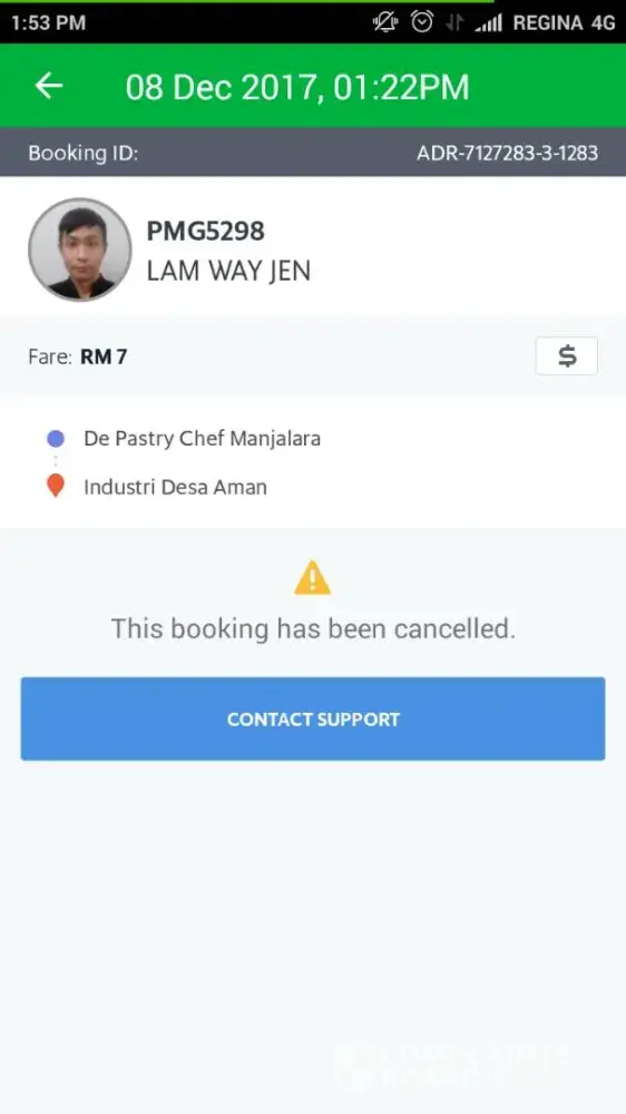 Hi. I would like to complaint the driver 'LAM WAY JEN' (PMG5298), Booking ID: ADR-[protected]. Was about 1:30pm just now, I was about walking to his car, I think he got saw me, and I almost reach his car but he just passed by me and drive away.. When I look at phone, he cancel my order. WHATSS THE HELL... I almost reach to his car, he cancel my order. I am in a rush to that place, he play and cancel my order?