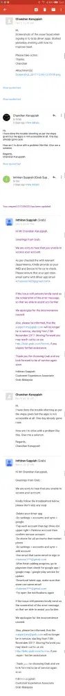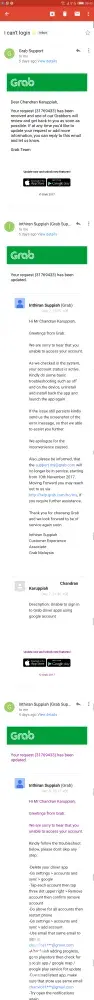 I told them that I tried everything already but the grab driver apps is totally inaccessible.There is no reply from the technical support.