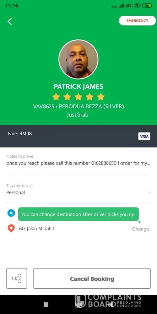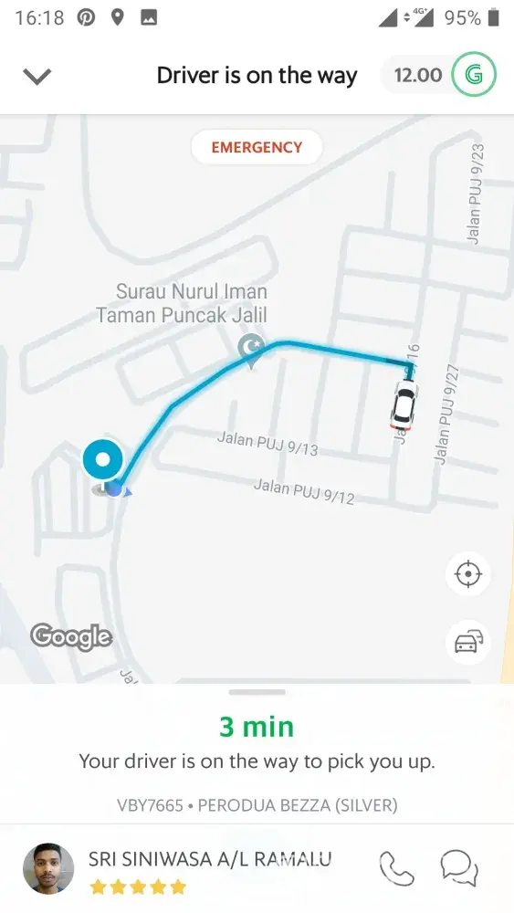 This man Mr. Sri Siniwasa A/L Ramalu driving perodua bezza (silver) with plate number VBY7665 is not responding to my request and the screen show it was 3 minutes drive to my place but i have been waited for 15 minutes. He claimed he was stuck in jam but to my dismay this road doesn't have any traffic light as it is around housing area. I already pay using my grabpay with amount Rm10, it was deducted already. Do entitled to get my money back as this is not my fault and its raining here, i am in rush.