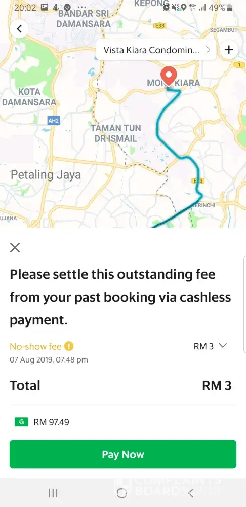 Being charged Rm3 for not showing up or being late, but the problem is not me, the driver either didnt reach the place or they didnt even notify that they are nearby and arriving, tjey simpily assume that they arrived the place and waiting for their customer thou they actually didnt, the worst is some even ignore phone calls. This is not the first time, fees where being charge and it feels like being scammed all the time.