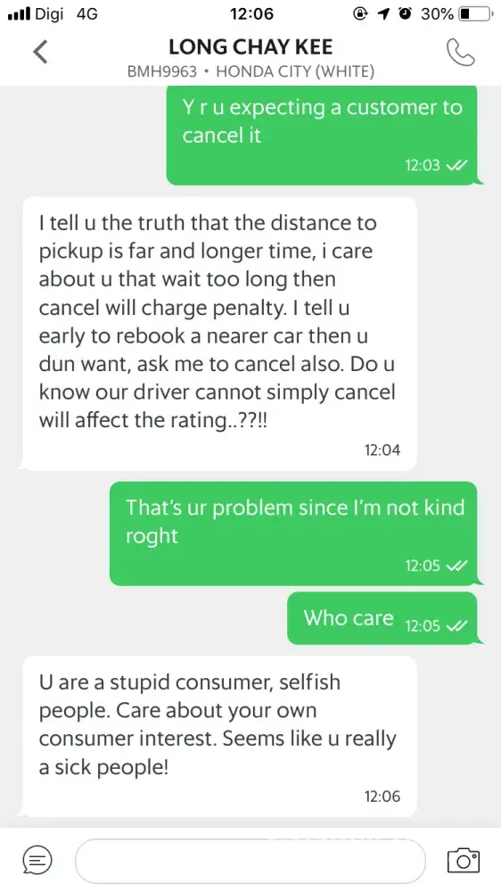 I had booked a grab on 26th July 2019. It showed your will arrive in 8 mins. So o waited, suddenly he texted me to please cancel n rebook since he far away n jammed. I said ok, requested him to cancel since the driver wanted me to cancel. I believe that's nothing wrong in asking him to do it rite? All of sudden he is saying that I'm not kind enough n don't understand driver's situation. The word he used not kind is already triggered me, how dare a driver use such a word to a customer. That's not rite? Is this a way Grab Management filter a driver? I really wanted to attached my message communication for the grab management to take action on this type of driver., he shud b teach a lesson. I really want response from ur team ASAP.