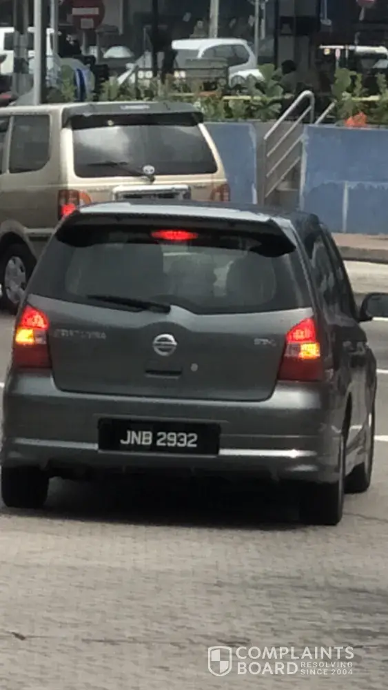 On 31/ 07/19, I was walking towards for my commute to work at LRT Taman Bahagia, Nissan Note JNB 2932 Grey colour was doing a reverse very fast on the high speed public road just to turn in the LRT station just to pick up a passenger. What he did is reckless, and I was unlucky walking past by the road to the station to work and he knock me down, luckily I'm quick enough to avoid it.