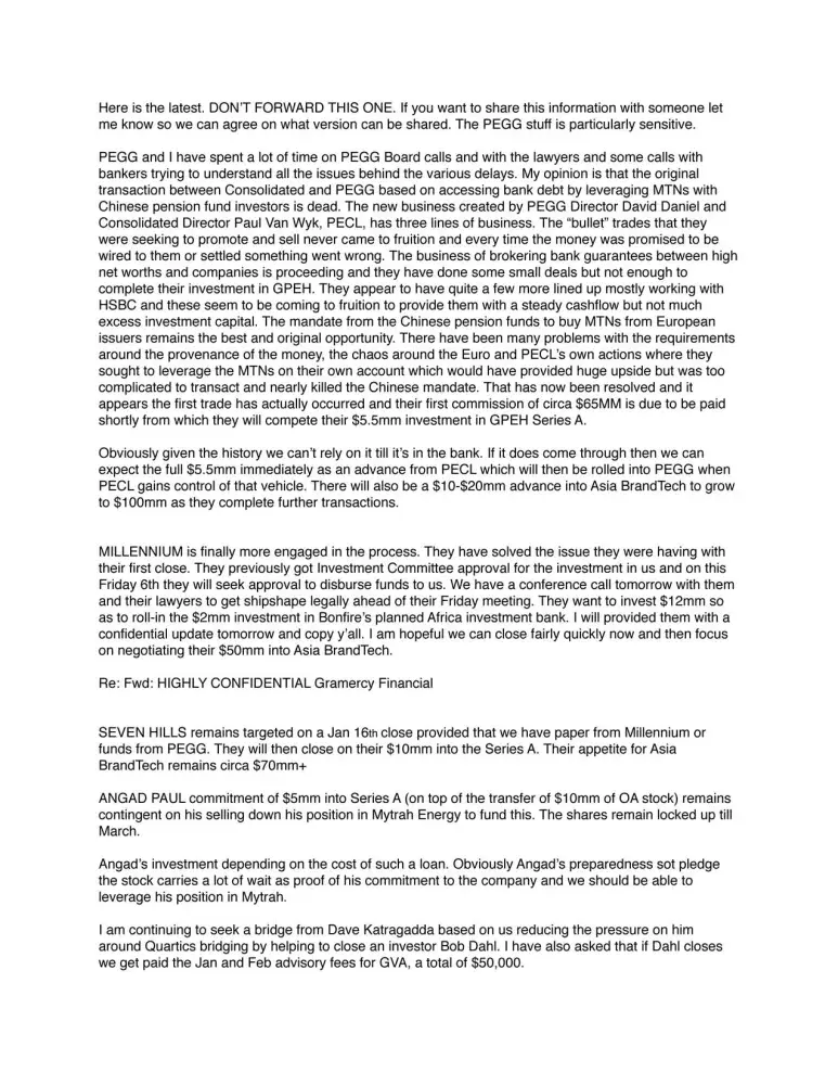 But that’s the way he rolls. And with me out of the way, he went straight back to fleecing more people of their hard-earned money, either by getting potential investee companies to pay him / Gramercy fees based on empty promises of his ability to raise money for them; or by drawing other unsuspecting victims (whether they be investors or lenders) into his web of deceit, regarding some new scam or another.