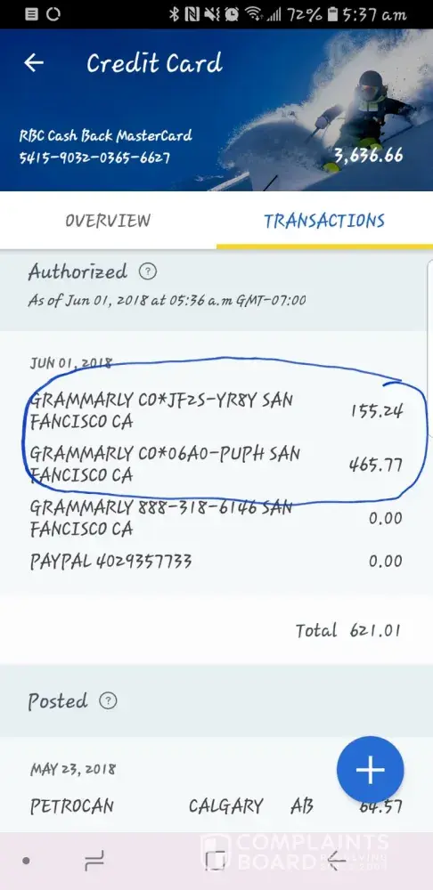 Grammarly I was charged unlawfully again even though a subscribed only for one month