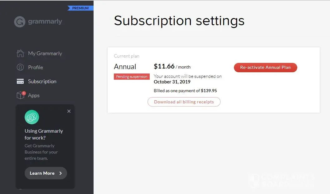 Grammarly complain