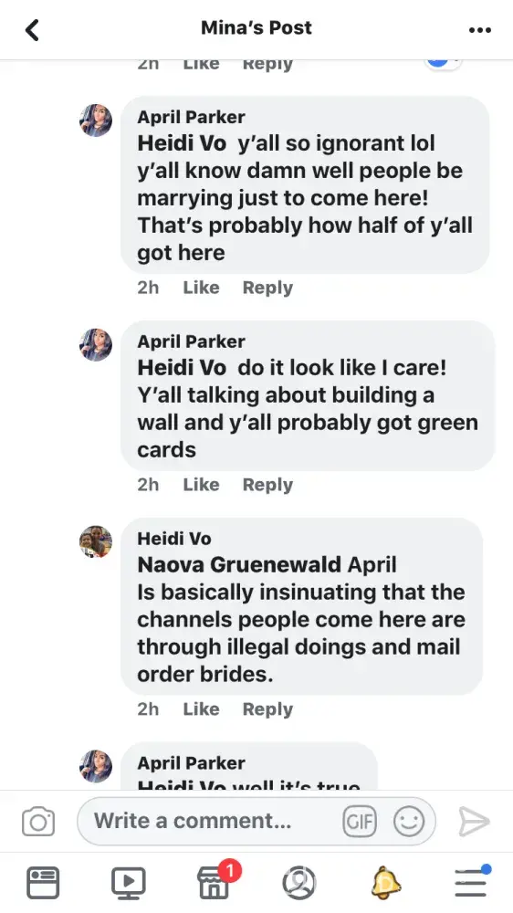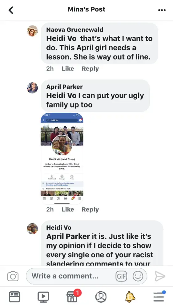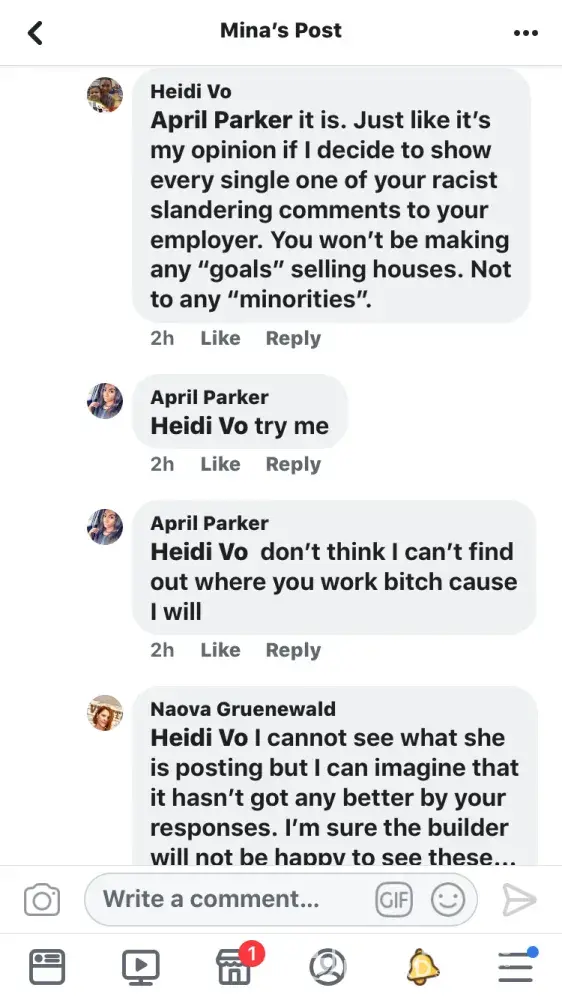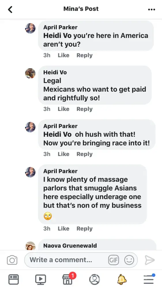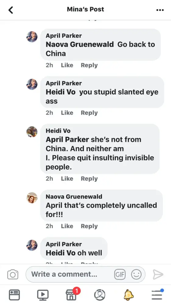 Your employee April parks was caught red handed making racist comments on her friends political post. She said her personal life doesn't affect her work life. Said to go back to China, belittled minority's, called asians slant eyes, bit&$, as well