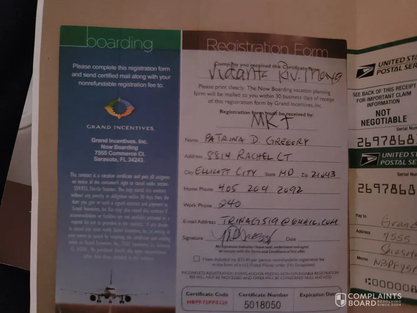 I went to a time share seminar where they said I would receive a free trip upon completion. I sent in my paperwork to Grand Navigator to claim my trip. I never received the paperwork back from them to book my trip. I called to tell them I had a signed return receipt that they had received the paperwork. Then they told me they voided my certificate and would not provide my vacation to me. I basically told them they were a scam!Do not use these people. I am so glad I did not give them a deposit. After hearing other people say on this page how they got their money stolen from them.