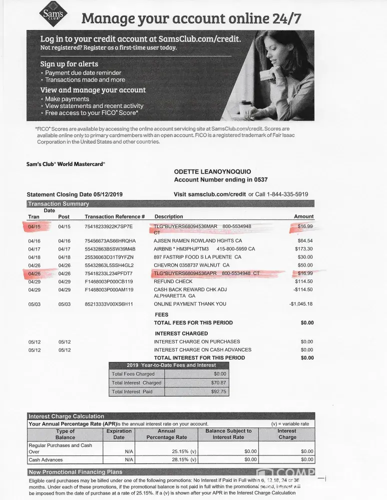 The most troublesome part of this event was that we've had our card replaced at least two times since 2014 for fraudulent activity and the vendor was still able to continue charging this monthly amount despite not having the correct card number any longer. Apparently visa allows that. Shame on visa.